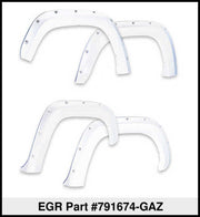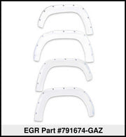 EGR Fender Flares are manufactured to OEM Quality, and are robotically trimmed to give you the most precise fitment in the industry. Made from raw, virgin material, you know you're only getting the good stuff here at EGR. All EGR Fender Flares feature an easy, no-drill installation process; which will have you showing off your truck in no time. Don't get faded with the other guy's; EGR Fender Flares all feature a UV protectant film that will keep your flares looking new for years to come. When it comes to EGR, Premium Quality would be an understatement, it's the Standard!