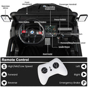 Electric 2 Seater UTV Dump Truck with Remote Control, Dump Bed, and Shovel - Black
