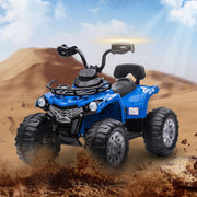 The Electric 4-Wheeler Quad Truck Car for Kids - 12V Battery Powered Ride-On ATV is the ultimate ride-on toy that will provide an unparalleled driving experience for your little ones. With its simple operation, all they need to do is turn on the power button and press the forward/reverse switch to start their adventure. They can easily control the handle to freely drive in any direction they choose.This ride-on ATV is powered by a powerful and rechargeable 12V battery. It comes with an adapter that allows you to conveniently charge the vehicle whenever needed. After a full charge, the battery lasts for approximately 50 minutes of running time, giving your kids plenty of time to enjoy their ride-on adventure.The design of this ride-on ATV is specifically made with kids in mind. The wide seat is perfectly fitted to children's body shape, ensuring maximum comfort during their ride. It also features footrests on both sides, allowing them to take a relaxing break while driving and doubling their driving enjoyment.Made with durable materials, this mini quad ATV is built to last. It is constructed with high-quality PP and an iron frame, providing higher strength and a load capacity of up to 66 pounds. Your little ones can ride on various types of terrain, from wooden floors to concrete, plastic tracks, and asphalt roads, thanks to its 4 large anti-vibration and wear-resistant wheels. The low center of gravity ensures a stable and safe driving experience.With its realistic ATV appearance, this ride-on car will instantly capture your kids' attention. It is the perfect gift for birthdays or Christmas, creating joyous childhood memories that will last a lifetime. Key Features:- Variable high/low speeds for different driving experiences- More powerful 12V battery and dual 200W motor- Cool ATV design with off-road appearance, bright LED headlights, and horn sound- Music function with AUX input and USB connection to play music or stories- Great safety features, including slow start technology for gradual acceleration and reliable brakes- Comfortable wide seat that perfectly fits the child's body shape, allowing free movement and comfort- Four big tires with a spring suspension system to reduce vibration and offer a comfortable driving experience- 7AH big battery provides up to 1 hour of driving duration under normal circumstancesProduct Specifications:- Color: Blue- Main Material: PP + iron frame- Net Weight: 35 lbs- Max Weight Capacity: 66 lbs- Suitable Age: 3-8 years old- Overall Dimensions: 39.5"(L) x 24"(W) x 28.3"(H)- Speed: Low/High- Battery: 12V 7AH x 1- Motor: Dual 200W Motor- Charge Time: 8-12 hours- Playing Time: 1-2 hoursPackage Content:- 1 x Kids Ride on ATV- 1 x Manual Instruction- 1 x Charger- 1 x Audio Cable