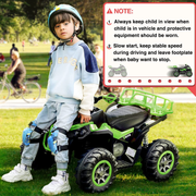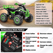 The Electric Quad Vehicle for 3-7 Year Olds: The Perfect ATV Toy for Kids! Introducing the Electric Quad Vehicle for 3-7 Year Olds, the ultimate ride-on ATV toy for kids! This realistic and adventurous toy is designed to provide a thrilling and safe driving experience for children aged 3-7 years. With its powerful 12V7AH rechargeable battery, this quad vehicle can run for 1-2 hours after just 8-12 hours of charging time. The speed range of 3-7km/h allows kids to enjoy a thrilling ride while ensuring their safety. Let your little ones embark on their first driving lesson with this incredible ride-on ATV! Key Features: Realistic Functionality Safe & Comfortable Design Easy Operation All-Terrain Drive Perfect Gift for Kids Product Specifications: Color: Green Product Dimensions: 38.58 x 24.8 x 24.41 inches Item Weight: 30.4 pounds Country of Origin: China Batteries: 1 12V batteries required. (included) Manufacturer recommended age: 36 months - 7 years Realistic Functionality The Electric Quad Vehicle for 3-7 Year Olds is designed with realistic functionality to provide an immersive and exciting ride-on experience for kids. The advanced slow start technology ensures a safe start for your little ones, protecting them from sudden acceleration. The ergonomic curved wide seat offers comfortable sitting, while the footrests accommodate their feet, enhancing the overall enjoyment during driving time. Let your kids experience the thrill of driving with this realistic ride-on ATV! Safe & Comfortable Design Your child's safety is our top priority. The Electric Quad Vehicle is made of non-toxic materials and is ASTM certified, guaranteeing a safe and reliable companion during your baby's growth. The seat is designed with an ergonomic curved wide seat for comfortable sitting, ensuring a pleasant ride every time. Additionally, the ride-on ATV features a crash barrier for added safety. Let your kids ride with confidence and comfort! Easy Operation Operating the Electric Quad Vehicle is a breeze! Your little ones can simply turn on the power button, choose the high or low speed, and control the handle to change the direction. To move forward, they just need to press the pedal down. If necessary, there is a forward-reverse switch for easy maneuvering. The LED headlights and rubber tires enhance the overall driving experience, allowing your kids to feel like real adventurers on their ride-on ATV! All-Terrain Drive With its wear-resistant wheels, the Electric Quad Vehicle allows your little ones to ride on all terrains, whether it's dust, grass, or a cobbled road. Indoors or outdoors, your babies can enjoy self-driving wherever they want. The thicken 4 wheels featuring a large diameter provide stability and higher resistance to abrasion, ensuring a lifetime of use. Let your kids explore the world with this versatile ride-on ATV! Perfect Gift for Kids This ride-on ATV is the perfect gift to cheer up your little angels! With the option to play music or stories, your kids can change to various modes as they wish. The extra MP3 player and USB port provide more resources for educational purposes, making learning fun and interactive. Whether it's for Christmas or a birthday, this ride-on ATV will create precious childhood memories for your kids. Watch their faces light up with joy!