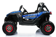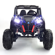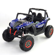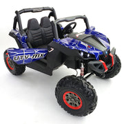 The Electric Ride-On Buggy with Remote Control - 2 Seater ATV for Kids, 200W 24V Battery-Powered Car The Commander ATV Buggy Car for kids is the action packed electric ride for active children! With its one-of-a-kind 24V, 200 Watts drive Monster, this ride-on car will provide endless fun and excitement for your little ones. Parents are always in control of the car, able to divert it at any time or stop it using the convenient STOP button. Whether your child wants to operate it independently using the electric pedal or you want to take control with the adult 2.4 GHz remote, this ride-on car offers the best of both worlds. Get ready for a thrilling adventure with the push button start and the Spider Blue color, making this ride-on car a standout choice for any young explorer. Key Features: Size: 49” x 36” x 32” (124x82x81cm) Max Load: 110 lb. (50 kg) 2 leather seats (20" total width) - kids 3-4 years old ride together, kids 5-6 years old ride alone USB, SD, MP3 plug – you can play music from flash drive stick, SD card or MP3 player with volume control Multimedia MP4 screen – you can upload your favorite music, pictures, karaoke and control them from the screen Anti-skid rubber wheels and suspension for more comfort during off road driving 14.5" rubber tires Extra high (10") ground clearance STOP button to easily stop the toy within 50-70 ft 3 Speed: low / fast /superfast - up to 3.5 mph (5 km/h) Ages: 2-5 years (2) Motors – 200 Watts total (1) 24V Battery LED headlights and taillights Seat belt to make ride safer Small rear trunk Horn Sound Charging time: 8-12 hours Travel time: up to 1 hour, depends upon usage Net weight: 100 lb. (45 kg) Specifications: Theme: Cars Accessories Included: Battery(ies) Gender: Boys & Girls Body Type: Children’s Power Type: Electric Color: Spider Blue Brand: ToyStar