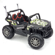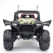 The Electric Ride-On Car for Kids - 2 Seater UTV Style - 400W 24V Motor - Remote Control is the ultimate adventure machine for active children! This one-of-a-kind 24V, 400 Watts drive Monster is designed to provide endless fun and excitement. With its powerful motor and rugged construction, your child will be able to conquer any terrain and have the ride of their life! Key Features: Theme: Cars Accessories Included: Battery(ies) Gender: Boys & Girls Body Type: Children’s Power Type: Electric Color: Army Green Brand: ToyStar Product Specifications: Size: 51” x 36” x 33” Max Load: 110 lb. (50 kg) Leather seats (21" total width) - kids 3-4 years old ride together, kids 5-6 years old ride alone USB, SD, MP3 plug – you can play music from flash drive stick, SD card or MP3 player with volume control Multimedia MP4 screen – you can upload your favorite music, pictures, karaoke and control them from the screen Anti-skid rubber wheels and suspension for more comfort during off road driving 15" rubber tires Extra high ground clearance - your kids can keep trucking whether they are riding on grass, hard surfaces such as concrete and rough terrain STOP button to easily stop the toy within 50-70 ft 3 Speed: low / fast / superfast - up to 3.5 mph (5 km/h) Ages: 3-5 years (2) Motors – 400 Watts total 12V x 2 Batteries LED headlights and taillights Seat belt to make ride safer Small rear trunk Horn Sound Charging time: 8-12 hours Travel time: up to 1 hour, depends upon usage Get ready for action-packed adventures with The Electric Ride-On Car for Kids - 2 Seater UTV Style - 400W 24V Motor - Remote Control. Whether your child is cruising through the backyard, exploring rough terrains, or simply having fun with their friends, this ride-on car will provide them with endless entertainment. With its stylish army green color and realistic design, it's sure to turn heads wherever it goes. The included remote control allows parents to have full control over the car, ensuring the safety of their little ones. The leather seats provide maximum comfort for long rides, and the seat belt adds an extra layer of safety. The anti-skid rubber wheels and suspension system ensure a smooth and comfortable ride, even on rough terrains. The LED headlights and taillights not only provide visibility but also add a cool factor to the car's overall design. Your child can also enjoy their favorite tunes with the USB, SD, MP3 plug, and control them from the multimedia MP4 screen. The small rear trunk provides storage space for their toys or snacks. With a charging time of 8-12 hours, the car is ready to go for up to 1 hour of non-stop adventure. Whether your child is a boy or a girl, this Electric Ride-On Car is perfect for kids aged 3-5 years. So let your child's imagination run wild and let them experience the thrill of driving their own car with The Electric Ride-On Car for Kids - 2 Seater UTV Style - 400W 24V Motor - Remote Control.