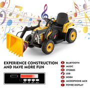 Electric Ride-On Excavator Digger with Bluetooth Music and Remote Control - 3 Speeds, Yellow