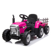 The Electric Ride-On Tractor with Trailer and Remote Control for Kids (12V) is an exciting and adventurous toy car that will provide endless hours of fun for your little ones. With its vibrant green exterior design and LED headlights, this ride-on tractor is sure to capture the imagination of children everywhere.One of the standout features of this toy car is its detachable trailer, which is easy to install and adds an extra element of playtime excitement. Your child can load up the trailer with their favorite toys and take them for a ride around the yard or driveway. The trailer is also equipped with a seat belt and foot brake pads for added safety, ensuring that your child can enjoy their remote control ride on adventure with peace of mind.This ride-on tractor is designed to conquer various terrains, making it suitable for use on lawns, roads, gravel roads, and dirt roads. Its four large tires provide excellent traction and stability, making it less likely to slip or get stuck. With a maximum seat capacity of 66 pounds, this ride-on tractor is suitable for most children aged 3 to 11.Powered by two 25-watt motors, this ride-on tractor offers three adjustable speeds, allowing your child to cruise at their desired pace. With a top speed of 2 to 5 miles per hour, your child can experience the thrill of driving their very own tractor. The 12-volt battery provides a long-lasting charge, with a charging time of 8 to 12 hours and a usage time of 30 to 40 hours.In addition to its impressive features, this ride-on tractor comes in two vibrant colors - green and pink. You can choose the color that best suits your child's preferences. For added convenience and safety, this ride-on tractor also comes with a remote control. This allows children to drive by themselves or allows adults to take control and ensure the safety of their little ones.Specifications:- Brand: Unbread- Material: PP- Load Capacity: 66 LBS- Battery: 12V 4.5AH*1- Motor: 25W(390)*2- Charging Time: 8-12 Hours- Using Time: 30-40 Hours- Speed: Three Speed (can reach 2-5mph)- Wheel Number: 4- Recommended Age Range: 3+ Years- Character Family: Ride on Car- Age Level: 3-4 Years, 4-7, 8-11 Years- Theme: TractorGet ready for an exciting ride-on adventure with the Electric Ride-On Tractor with Trailer and Remote Control for Kids (12V). Order yours today and watch your child's imagination soar as they explore the world of farming and transportation in their very own ride-on tractor.