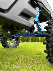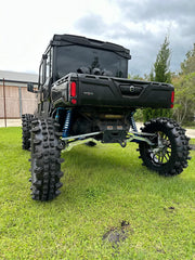 Get the full potential out of your machine with our first of its kind long travel kit with a rear trailing arm conversion. This kit deletes ball joints, offsets front and rear to clear those big tires without the big lift and OVERALL strengthens your suspension setup on your machine. It does require some fabricating but don’t be scared away. Through countless hours in R&D we have made this kit as easy as possible on the installer with self aligning brackets. That’s right, no measuring or Fab knowledge needed on your end. We took care of all that.
