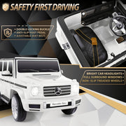 The G500 Electric Ride-On Car for Kids - 12V Battery Powered Driving Toy is the perfect toy to give your child the joy of owning a luxury car in advance! This ride-on car combines entertainment and safety, providing endless fun while promoting cognitive development, boosting hand-eye coordination, cultivating spatial imagination, and improving motor skills. It is truly an ideal gift choice for kids aged 3-8.With its 4WD and high performance, this rc ride on car is equipped with a powerful 4 * 25W four-wheel drive engine and a 12V 7AH rechargeable battery. This makes it more powerful and provides better traction for a realistic driving experience. Your child can enjoy driving this car for 90-120 minutes at a top speed of 3.66 MPH on different indoor or outdoor terrains.Safety is a top priority with this ride-on car. It features damping spring suspension on all 4 power wheels, reducing impact and ensuring stability and comfort. The advanced soft start function prevents sudden acceleration or brake, while the seat belts and safety door locks provide comprehensive protection for your child. You can enjoy worry-free adventures with your little ones!This ride-on car offers both manual and parent control options. Your child can drive independently using the steering wheel and pedal, while you can control the car through a 2.4GHz remote control. The remote control includes an emergency brake and 3 speed selection function (1.86-3.66 mph), further ensuring the safety of your child and increasing parent-child interaction.But that's not all! This ride-on car also comes with abundant entertainment functions. It features a digital display design on the central control of the powerful 12V engine car, providing surprises and a series of functions such as music, bright LED headlights, speakers, and a rocking mode. Your child will have a pleasant driving experience with all these added features.Made with durable and non-toxic materials, this electric ride-on car is constructed with PP and ABS plastic, as well as metal components. It has received ASTM & CPSIA certification for greater reliability. The seat size is 16 inches, and it can accommodate a maximum user weight of 80 lbs. The overall size of the car is 45 inches in length, 23.6 inches in width, and 22 inches in height.In terms of specifications, this ride-on car has a 12Volt 7AH battery and a 25W * 4 motor type. It has a safe speed range of 1.8-3.7 mph and a run time of 1.5-2 hours, depending on the child's weight and speed. The music function includes an AUX & USB port, as well as built-in music. The controller requires 2 AAA batteries (not included).With its sleek white color and stylish design, this ride-on car is perfect for any little car enthusiast. It is recommended for children aged 3-6 years and is themed around cars, specifically the famous brand Benz. It also comes with a safe certificate, including CPC, ASTM F963 & CPSIA certifications.Give your child the ultimate driving experience with the G500 Electric Ride-On Car for Kids - 12V Battery Powered Driving Toy. Order now and watch your child's face light up with joy as they embark on exciting adventures in their very own ride-on car!
