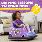 The Gabby's Dollhouse Electric Bumper Car - 6V Battery Powered Ride On is the perfect toy to bring smiles and endless entertainment to kids ages 1.5 - 4 years. This ride-on car is designed to provide screen-free fun and excitement for little ones. With its ability to spin 360 degrees, your child will be thrilled as they zip around the house, racing, chasing, spinning, and bumping to their heart's content.