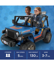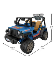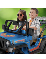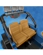 The Hot Wheels Jeep Wrangler Ride-On - Blue (CBG61) - 2 Seater is a thrilling 2-person ride-on that combines realistic Jeep Wrangler styling with exciting features. This battery-powered ride-on is perfect for young adventurers aged 3 to 7 years.
