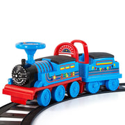 Interactive 6V Electric Kids Train Set with Track, Carriage, Lights, Whistle, Music, Storytelling, and Storage