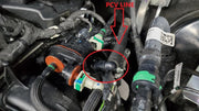 During the process of venting crankcase pressure back through your intake track, large amounts of oil, in the form of vapors can gather/accumulate in your intake tube, intake manifold runners and even dilute your gas, lowering its octane level. This happens on all engines and is even worse with forced inducted vehicles (supercharged and turbocharged) as crankcase pressures are increased. To combat this, we have developed an oil separator of our own design. Milled from solid billet aluminum this is a rock-solid piece. It has a knurled tank base for easy removal to drain the spent oil and an O-ring seal to prevent any leaks. Filtering consists of a fine mesh stainless steel screen that traps fine oil vapors and releases them once heavy enough to fall. They then pass through a 1/2" thick 1/16th" aluminum honeycomb filter where they grow every larger and then fall into the bottom. By the time the oil gets through the filter it's too heavy to be passed on into the intake. The tank holds 3 oz of fluid, while that may not sound like a lot, you shouldn’t see that much oil in your PCV system. Drain it every 2000-3000 miles and you will never come close to filling it.