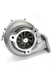 This is a journal bearing turbo with a Borg Warner 300sxe Style turbine wheel, modified to fit inside a drop in ready Super Duty turbo.