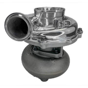 This is a journal bearing turbo with a KC Turbos 300x turbine wheel, modified to fit inside a drop in ready Super Duty turbo.