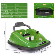 The Kimbosmart DIY Electric Bumper Car for Kids with Remote Control - 6V Ride On Toy is an exciting and interactive ride-on toy car that will bring endless fun and adventure to your little ones. With its unique design and features, this bumper car is sure to be a hit among kids aged 3 to 8 years.One of the key features of this rc ride on bumper car is its ability to spin a full 360 degrees with simple joystick controls. Your child can experience the thrill of spinning around in all directions, adding an extra level of excitement to their playtime. The maximum speed of this electric spinning car is 1.24mph, ensuring a safe and enjoyable ride for your child.Safety is a top priority with this bumper car. It is equipped with a full surround protective design and a safe belt to keep your child's body balanced and steady during play. The soft bumper acts as a cushion, protecting both the car and your child during bumping games. The sturdy plastic shell and anti-flat wheels ensure durability and stability.This bumper car also features built-in music and colorful flashing LED lights, adding a fun and vibrant atmosphere to your child's playtime. The colorful LED lights enhance the overall experience and make the ride even more enjoyable.The Kimbosmart DIY Electric Bumper Car is suitable for most indoor and outdoor surfaces, including wooden, tile, concrete floors, and thin carpets. Your child can play with this bumper car anywhere they want, bringing the fun wherever they go.In terms of driving modes, this ride-on toy offers two options. Your little one can drive the car independently, allowing them to have full control over their playtime. For added safety, especially for younger children, there is a remote control included that allows parents to control the toy.To make this bumper car even more personalized, we provide free stickers for your toddler or child to customize their ride. The stickers include four sets of 0-9 numbers, allowing your child to add their own personal touch to their hot new ride.The Kimbosmart DIY Electric Bumper Car for Kids with Remote Control - 6V Ride On Toy comes in four vibrant colors: Red, Black, Pink, and Green. The material used for this bumper car is PP and Iron, ensuring durability and longevity.Specifications:- Motor: 25W- Weight Capacity: 66 lbs- Charge Time: 8-12 hrs (18 for the first time)- Speed: 2km/h- Battery: 6V 4AH- Overall Dimension: 29.9*25.2*17.7 inch- Seat size: 13"W x 8"D- Assembly Required: Yes, Need to Connect The Battery WirePackage Includes:- Ride-on Bumper Car x 1- Remote Controller x 1- User Manual x 1- Charger x 1- Number Stickers x 1Please note that adult supervision is required when children are using and driving this toy car. It is important to read the assembly and operations manual before use. The vehicle should not be used until any damage has been repaired to ensure the safety of your child.With the Kimbosmart DIY Electric Bumper Car for Kids with Remote Control - 6V Ride On Toy, your child will have a blast exploring and playing. Get ready for hours of fun and adventure with this safe and interactive ride-on bumper car.
