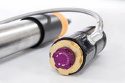 Using the Nordschleife as it's testing grounds and the 7-post rig, KW developed it's V4 Clubsport coilover kit. Wheel loads, vehicle weight and chassis reinforcements (increased body stiffness) can all be taken into consideration with Adjustment -capabilities of the V4 Clubsport. The KW Clubsport coilovers combine KW's high-end racing technology -with maintenance-free KW OEM quality components. Designed to provide you the ideal product to utilize the full potential of your sports car during autocross, track days, high performance drivers education (HPDE) courses, club racing, and is tested rigorously on race tracks such as the Nurburgring Nordschleife. Race teams rely on KW's racing expertise and experience for their vehicle setup. This same championship winning pedigree is mirrored in the development of each one of the KW Clubsport coilover systems. Similar to the KW Competition suspension used in international motorsports, the KW V4 Clubsport coilover kit allows fine tuning of the compression damping separately in the low-speed and high-speed range. The click adjustments of the TVCLH-A valve technology -ake for easy Adjustment -directly on the reservoir. You can modify the low-speed compression damping with 6 precise clicks with the purple low speed Adjustment -ial and directly beneath it the golden Adjustment -heel provides an additional 14 precise clicks of high speed compression adjustment. In addition, the TVR-A technology -provides 16 clicks to noticeably adjust the rebound damping independently of the compression damping. If you would like to adjust the KW V4 Clubsport coilover kit it can easily be adjusted for more comfort or to an alternative setup for a new race track. The KW V4 Clubsport benefits from the same motorsports technology -hat has proven its endurance with multiple overall wins at the ADAC Zurich 24h Nurburgring race.