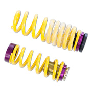 KW (H.A.S) Height Adjustable Spring kits are a great alternative to conventional lowering springs. You are no longer stuck with a fixed lowering height. KW H.A.S. systems allow you to adjust the vehicle ride height with the KW height adjuster even after the kit has been installed. Your vehicle not only gets a more dynamic look, but also the steering behavior and response of the standard dampers becomes more agile. All driver assistance systems and comfort features of a factory adaptive or electronic suspension remain operational and work harmoniously with our vehicle specific spring set up. KW uses high-quality springs made of chrome-silicon steel with spring rates designed specifically for each respective OE suspension damper and wheel load. KW's expertise and engineering ensure the spring rates will pair perfectly with the different damper characteristics of your factory adaptive electronic suspension. Along with the use of high quality materials and the included KW ride height Adjustment - mechanisms, our KW H.A.S. kits always includes the vehicle-specific bump stops with dust protection system to protect your factory suspension against wear & tear caused by road grime and debris. Similar to a coilover suspension, the KW H.A.S kit allow a continuous adjustable ride height within a tested range, something not possible with conventional lowering springs. The dust protection elements and spring perches included in the delivery, when applicable, are always adjusted to the maximum technically possible lowering, typically limited by the factory dampers. With KW height adjustable springs, a sporty and harmonious driving behavior can be achieved without the driving dynamics of performance-oriented vehicles suffering. As with all KW suspension products our engineers develop vehicle specific parameters and spring specifications which undergo comprehensive testing on the Nurburgring Nordschleife and in our KW 7-post Driving Dynamic Test Center.
