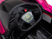 Lamborghini V12 Vision GT Kids Electric Ride-on Car with Remote Control The Lamborghini V12 Vision GT Kids Electric Ride-on Car with Remote Control Let the adventure begin for your child with the Lamborghini V12 Vision GT Kids Electric Ride-on Car with Remote Control! This children's ride-on car is perfect for 2-4-year-olds, allowing them to independently operate it using the electric pedal. But don't worry, adults can also take control with the remote. It's time to embark on thrilling adventures! Key Features: Electric pedal operation for independent play Remote control for adult supervision Push-button start with exciting Vroom Vroom start-up sounds Realistic leather seat for a comfortable ride Media Player with radio, Bluetooth, USB, SD, and MP3 plug for playing music Light-up steering wheel with a horn and built-in tunes Spring suspension on the rear axles for a smooth ride 10" EVA rubber wheels for durability 2-speed options: low and fast, reaching speeds up to 4 mph Two powerful 45-watt motors for a thrilling driving experience Long-lasting 12V-10AH battery Adjustable seat belt to ensure a safe ride Front and rear lights for added visibility Charging time of 8-12 hours Dimensions: 46"(L) x 26"(W) x 19"(H) Maximum weight capacity of 66 lb (30 kg) Travel time of up to 1 hour, depending on usage Product Specifications: Brand: ToyStar Power Type: Electric Body Type: Children’s Year: 2023 Color: Pink Recommended Age Range: 2-4 Gender: Boys & Girls Accessories Included: Battery(ies)