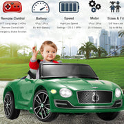 Licensed Bentley Style 12V Electric Ride-On Car with Remote Control and LED Lights - Green