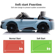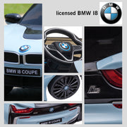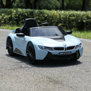 The Licensed BMW i8 Style 12V Electric Ride-On Car for Kids with Remote Control, MP3 Player, and LED Lights is the perfect gift for children aged 3 to 8 years old. This cool-looking BMW i8 electric toy car will catch your child's attention and provide them with endless fun and excitement.This multifunctional ride-on car offers a variety of features to enhance your child's experience. It comes equipped with music, speakers, stories, and LED lights, creating a delightful ride atmosphere. Additionally, your child can enjoy their favorite tunes by connecting their own music through the AUX port, USB interface, or TF card.Safety is our top priority, and this rc ride on car ensures a safe and reassuring experience for your child. The car features open doors with safety locks and spacious seats with seat belts, providing secure riding conditions. The soft start design prevents sudden acceleration, and the wheels with spring suspension ensure a smooth and comfortable ride.Parents can actively participate in their child's playtime with the two operation methods available. The provided remote control allows parents to control the car's movements, promoting parent-child interaction. Alternatively, children can independently control the car's forward or backward movement by pressing a few switches.Specifications:- Color: Blue/White- Material: PP + Iron- Overall Dimension: 45.25” (L) X 28.5” (W) X 18” (H)- Recommended Age Range: 3-8 Years- Speed Range: 1.9-3.7 mph- Net Weight: 30.4 lbs- Maximum Weight Capacity: 66 lbs- Charge Time: 8-12 Hours- Motor Type: #390 X 2- Battery Type: 12V 4.5AH X 1- Charger Type: 12V 500MAExperience the thrill of the Licensed BMW i8 Style 12V Electric Ride-On Car for Kids with Remote Control, MP3 Player, and LED Lights. Let your child embark on exciting adventures with this realistic and stylish ride-on car. Order yours today and watch your child's imagination soar!