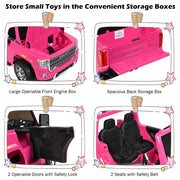 The Licensed GMC 2-Seater Pink Ride On Truck for Kids with Remote Control - 12V Are you still concerned that your child can't find a fun toy? Now this toy car can meet all your needs! This licensed GMC ride-on truck comes with different entertainment functions, such as an FM radio, bright LED lights, built-in music, USB connectors, volume adjustment, and a horn, creating an enjoyable riding atmosphere. In addition, kids can drive this car by themselves, or parents can help operate the car through the 2.4 GHz remote control. Featuring a slow startup system and 4 wear-resistant wheels with spring suspension, your little one will get the best protection. Moreover, this toy car has spacious storage boxes, which can carry various things that kids need when they go out. Key Features: Equipped with a USB slot to connect external devices Slow start function for gradual acceleration and reliable braking Spacious 2-seater with safety belt for sitting and playing Product Specifications: Color: Pink Material: PP + Iron Dimension: 53.5" X 34" X 29" (L X W X H) Net Weight: 56 lbs Maximum Weight Capacity: 88 lbs Charge Time: 8-10 hours Running Time: approximately 2 hours Speed: 2.5 mph - 5 mph Suitable Age: 3-8 years Battery: 12V 7AH Charger: 12V 900mA Package Includes: 1 X Licensed GMC Ride on Truck 1 X Adapter 1 X User Manual