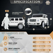 The Licensed Mercedes-Benz Ride On Car for Kids with Remote Control - 4 Wheels SUV Toy Truck (12V) is the perfect ride-on vehicle for eager toddlers. This mini version of the luxurious and powerful Mercedes-Benz G500 allows your child to grasp automotive mechanisms and develop driving skills while cruising in style both indoors and outdoors. With its recognizable Mercedes-Benz grille, this kids' G-Wagon electric car is sure to turn heads.Safety is a top priority with this G-Wagon electric car for kids. It features a single seat with an adjustable seatbelt to secure your child and prevent accidental falls. The dual-lockable doors and the emergency brake P button on the remote control provide additional protection. The Funcid electric toy car is also equipped with a smart chip that provides soft start and brake functions, ensuring comprehensive protection for your child's safety.This children's electric car delivers premium performance with its 4 powerful drive motors and a 12V 7AH rechargeable battery. It can achieve speeds of up to 3.7mph, allowing your child to have an exhilarating ride. The spring suspension device ensures a smooth and comfortable driving experience, while the treaded wheels provide exceptional grip on various terrains, including grasslands and asphalt roads. Your child can embark on exciting driving adventures and explore different environments with absolute confidence.Beyond its impressive performance, this Funcid remote control ride on car also offers entertainment features that will bring joy to your child's driving experience. In addition to the built-in songs, it has USB and AUX connectivity, allowing your child to play their favorite music while driving. The enjoyable back-and-forth rocking mode adds another layer of fun to the ride.When it comes to gifting, this 12V Mercedes-Benz G500 SUV car is the best choice for creating cherished and captivating driving memories that will last a lifetime. Its striking appearance and durable build make it a favorite among children.Product Specifications:- Color: Black/White/Red- Recommended Age: 3-6 years- Material: PP and ABS plastic, metal- Battery Type: 12Volt 7AH- Motor Type: 25W * 4- Maximum User Weight: 110 Lbs- Speed: 1.8-3.7 mph- Charging Time: 8-12 hr- Run Time: 1.5-2 hours (depending on the child's weight and speed)- Music Function: AUX & USB port/ Built-in music- Controller Batteries: 2 AAA batteries (not included)- Overall Size: 45 inch(L) x 23.6 inch(W) x 22 inch(H)- Seat Length: 15.8 inch- Safe Certificate: CPC, ASTM F963 & CPSIAAdditional Specifications:- Item Included: Radio, Locking Door, Foot Pedal, Safety Belt- Speed: 1.8-3.7 mph- Remote Control: 2.4g Remote Control- Material: PP Plastic, Metal- Item Included: Windshield, Large Display, LED Light- Age Level: 3-4 Years, 4-7 Years, 8-11 Years- Gender: Boys & Girls- Bluetooth Connect: Yes- Battery Type: 12V battery- Overall Size: 45 inch(L) x 23.6 inch(W) x 22 inch(H)- Battery Type: 12V7Ah- Feature: Safety, Remote Control, Music- Colour: Black/White/Red- Brand: Unbranded- Year: 2023- Weight Capacity: 110lb- Theme: Trucks- Recommended Age Range: 3-10 Years Old- Character Family: Toy StoryWith its impressive features and specifications, the Licensed Mercedes-Benz Ride On Car for Kids with Remote Control - 4 Wheels SUV Toy Truck (12V) is the ultimate ride-on toy that will provide endless fun and excitement for your child.