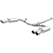 The MagnaFlow Street Series Cat-Back Performance Exhaust System 19457 19457 brings out the personality of your Car with our signature resonant, powerful engine tone and dyno-proven performance. Thanks to its fast-flowing, mandrel bent 2.5in. main piping and 3 Straight-Through mufflers ending in a Quad Split Rear exit with 4in. Polished Welded-On Double Wall Angle Cut Folded Edge tips, this Car exhaust kit has the performance chops to match its sporty sound and appearance. Upgrade your ride to the next level with an exhaust that has the pipes to put other Car's to shame. With this system your vehicle will be producing Moderate exterior and Mild interior sound levels while leaving other cars and trucks feeling envious at every stoplight. Exhaust kit 19457 features a cat-back layout that replaces your ride's stock exhaust components from near the catalytic converter on back. Extensive 3D scanning during development has resulted in a direct-fit design that you can easily install yourself. 19457 is produced using CNC precision robotic manufacturing techniques and is backed by MagnaFlow's 1-year limited finish warranty and limited lifetime construction warranty.