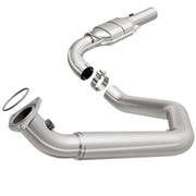 Keep the check engine light off with MagnaFlow OEM Grade Federal/EPA Compliant Direct-Fit Catalytic Converter 49601. With features including free-flowing mandrel-bent tubing and highly corrosion resistant stainless steel construction, easily install this spun body converter yourself using the proper tools, no cutting or welding required. MagnaFlow's state-of-the-art metrology department uses the latest 3D scanning systems during research and development, so you can be confident that your new part will fit and function like the original equipment. By replicating the OE spun body design, the single laser fusion weld greatly reduces the possibility of a leak, and our compact, low-mass design also allows for greater thermal efficiency. This direct-fit catalytic converter is designed to fit the 2003-2005 Chevrolet Express 3500, 2003-2005 Chevrolet Express 2500, and additional vehicles. The included gaskets & hardware reduce the possibility of a leaking seal while avoiding the need to reuse corroded factory parts for installation. This replacement part is designed to meet or exceed Federal emissions requirements set forth by the EPA, complying with legal standards for OBDII Federally registered vehicles with California or Federal/EPA Emission systems.