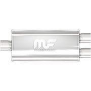 The MagnaFlow 5 X 8in. Oval Straight-Through Performance Exhaust Muffler 12198 is engineered to enhance your ride with a healthy helping of our signature exhaust sound and dyno-proven performance thanks to its free-flowing straight-through perforated stainless steel core wrapped in stainless steel mesh and acoustic fiber fill. The reversible, universal 3/2.5in. diameter inlet/outlet Straight-Through layout allows you to install it in whatever orientation and configuration you see fit. However, professional installation is highly recommended. Muffler 12198s weight-optimized 5x8x14in. oval-shaped body features a satin finish that elevates the overall aesthetics of your current exhaust setup. 12198 is made of durable, corrosion resistant stainless steel and produced using cutting-edge CNC precision robotic manufacturing techniques, all backed by MagnaFlow's limited lifetime construction warranty.