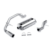 The MagnaFlow Street Series Cat-Back Performance Exhaust System 15666 brings out the personality of your SUV with our signature resonant, powerful engine tone and dyno-proven performance. Thanks to its fast-flowing, mandrel bent 3in. main piping and 1 Straight-Through mufflers ending in a Single Passenger Side Rear exit with 4in. Polished Welded-On Single Wall Angle Cut Rolled Edge tips, this SUV exhaust kit has the performance chops to match its sporty sound and appearance. Upgrade your ride to the next level with an exhaust that has the pipes to put other SUV's to shame. With this system your vehicle will be producing Moderate exterior and Mild interior sound levels while leaving other cars and trucks feeling envious at every stoplight. Exhaust kit 15666 features a cat-back layout that replaces your ride's stock exhaust components from near the catalytic converter on back. Extensive 3D scanning during development has resulted in a direct-fit design that you can easily install yourself. 15666 is produced using CNC precision robotic manufacturing techniques and is backed by MagnaFlow's 1-year limited finish warranty and limited lifetime construction warranty.