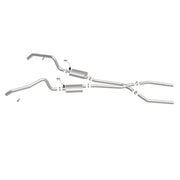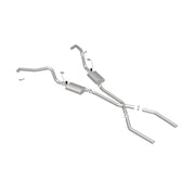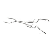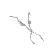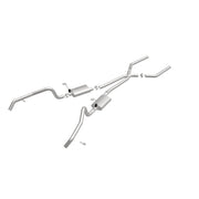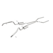 The MagnaFlow Street Series Crossmember-Back Performance Exhaust System 15896 brings enhanced engine sound and dyno-proven performance to your muscle car with a healthy helping of our deep, resonant signature exhaust note at Moderate exterior and Mild interior sound levels. Thanks to its durable, corrosion resistant stainless steel design, this exhaust system will handle whatever tarmac you decide to leave your mark on. This performance exhaust kit features a crossmember-back layout designed to replace your exhaust system from the crossmember on back. With its fast-flowing, mandrel bent 2.5in. main piping and 2 Straight-Through mufflers ending in a Dual Split Rear exit that you can enhance with tips of your choosing, your muscle car will be sounding as awesome as it looks. Extensive 3D scanning during development has resulted in a direct-fit design that you can easily install yourself. 15896 is produced using CNC precision robotic manufacturing techniques and is backed by MagnaFlow's limited lifetime construction warranty.