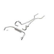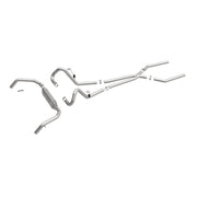 The MagnaFlow Street Series Crossmember-Back Performance Exhaust System 15895 brings enhanced engine sound and dyno-proven performance to your muscle car with a healthy helping of our deep, resonant signature exhaust note at Moderate exterior and Mild interior sound levels. Thanks to its durable, corrosion resistant stainless steel design, this exhaust system will handle whatever tarmac you decide to leave your mark on. This performance exhaust kit features a crossmember-back layout designed to replace your exhaust system from the crossmember on back. With its fast-flowing, mandrel bent 2.5in. main piping and 1 Straight-Through mufflers ending in a Dual Split Rear exit that you can enhance with tips of your choosing, your muscle car will be sounding as awesome as it looks. Extensive 3D scanning during development has resulted in a direct-fit design that you can easily install yourself. 15895 is produced using CNC precision robotic manufacturing techniques and is backed by MagnaFlow's limited lifetime construction warranty.
