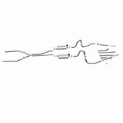 The MagnaFlow Street Series Crossmember-Back Performance Exhaust System 15894 brings enhanced engine sound and dyno-proven performance to your muscle car with a healthy helping of our deep, resonant signature exhaust note at Moderate exterior and Mild interior sound levels. Thanks to its durable, corrosion resistant stainless steel design, this exhaust system will handle whatever tarmac you decide to leave your mark on. This performance exhaust kit features a crossmember-back layout designed to replace your exhaust system from the crossmember on back. With its fast-flowing, mandrel bent 2.5in. main piping and 2 Straight-Through mufflers ending in a Multiple Exit Options exit with 2.75in. Polished Weld-On Single Wall Turndown Cut Edge tips, your muscle car will be sounding as awesome as it looks. Extensive 3D scanning during development has resulted in a direct-fit design that you can easily install yourself. 15894 is produced using CNC precision robotic manufacturing techniques and is backed by MagnaFlow's limited lifetime construction warranty.
