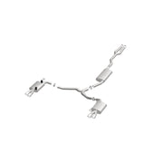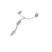 The MagnaFlow 2005-2010 Chrysler 300 Street Series Cat-Back Performance Exhaust System 16623 brings out the personality of your 2.7L, 3.5L 2005-2010 Chrysler 300 with our signature resonant, powerful engine tone and dyno-proven performance. Thanks to its fast-flowing, mandrel bent 2.5in. main piping and 3 Straight-Through mufflers ending in a Quad Split Rear exit with 3in. Polished Welded-On Double Wall Angle Cut Rolled Edge tips, this Chrysler 300 exhaust kit has the performance chops to match its sporty sound and appearance. Upgrade your ride to the next level with an exhaust that has the pipes to put other Chrysler 300's to shame. With this system your vehicle will be producing Moderate exterior and Mild interior sound levels while leaving other cars and trucks feeling envious at every stoplight. Exhaust kit 16623 features a cat-back layout that replaces your ride's stock exhaust components from near the catalytic converter on back. Extensive 3D scanning during development has resulted in a direct-fit design that you can easily install yourself. 16623 is produced using CNC precision robotic manufacturing techniques and is backed by MagnaFlow's 1-year limited finish warranty and limited lifetime construction warranty.