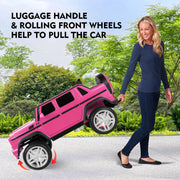 Mercedes-Benz Electric Ride On Car for Kids - 3 Speeds, LED Lights, Bluetooth, and Remote Control The Mercedes-Benz Electric Ride On Car for Kids - 3 Speeds, LED Lights, Bluetooth, and Remote Control Introducing the Mercedes-Benz Electric Ride On Car for Kids - a thrilling and safe ride-on car that will provide your child with endless fun and adventure. This officially licensed Mercedes-Benz G650S rc ride on car is designed to give your child the mobility they desire while improving their fitness, coordination, and balance from an early age. With its impressive features and specifications, this ride-on car is the perfect gift for your little one's birthday or Christmas. Variants Pink Color Battery: 12V7AH*1 Charger: 12V900MA Car Speed: 2KM/H-4.5KM/H Maximum load: 66LBS Product Size: 46" x 28" x 23" Seat Size: 14.5" x 7.4" Back Cushion Size: 14.5'' x 9.8'' Applicable Age: 3+ years old (More suitable for children under 55 inches in height) Assembly Required: Yes Run Time: 45 minutes Charging Time: 8-12 hours (automatically controlled) Music Function: AUX/ USB / TF Cards (USB Flash Drive/ Mobile Phone etc.) Motor: 12V 30W540*2 Key Features: Officially Licensed Mercedes-Benz G650S Two Modes of Operation: Kids can operate the electric car themselves through pedals and steering wheel to enjoy the 2 different speeds Parents can control the kids car through the 2.4GHz remote control which has three speeds Built-in AUX port, USB, TF slot, music, Bluetooth, and story for a joyful driving journey High-bright LED lights for a super cool driving experience at night Safety features include slow start function, door with safety lock, and PU leather seat with safety belt Durable and portable design made of non-toxic PP and iron Wheels with spring suspension system suitable for all kinds of roads Luggage handle for easy outdoor transportation Specifications: Color: Pink Battery: 12V7AH*1 Charger: 12V900MA Car Speed: 2KM/H-4.5KM/H Maximum load: 66LBS Product Size: 46" x 28" x 23" Seat Size: 14.5" x 7.4" Back Cushion Size: 14.5'' x 9.8'' Applicable Age: 3+ years old (More suitable for children under 55 inches in height) Assembly Required: Yes Run Time: 45 minutes Charging Time: 8-12 hours (automatically controlled) Music Function: AUX/ USB / TF Cards (USB Flash Drive/ Mobile Phone etc.) Motor: 12V 30W540*2 Package Content: 1 x Electronic Toy Car 1 x Hardware Bag 1 x Manual Instruction 1 x Bluetooth Remote Control Warning: Please ensure the safety of your child by following these guidelines: Battery should only be charged by an adult Children should always be supervised when riding Car should not be ridden at night, near or around swimming pools, steep slopes, or near any public roads. Ensure a safe driving environment Car should only be washed with a clean damp cloth It is advisable to protect the car from weather conditions when not in use. Do not leave outside Please do not let children close to the moving vehicle and do not let the child touch the wheel