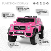 Mercedes-Benz Electric Ride-On Car for Kids with 3 Speeds, LED Lights, and RC Control - Pink