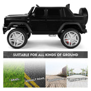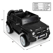 The Mercedes-Benz Electric Ride-On Car for Kids with Lights, Music, and Remote Control - 12V is the ultimate toy car for your child's adventurous spirit. This officially licensed Mercedes-Benz G650S ride-on car is designed to provide your child with mobility, fitness, coordination, and balance from an early age. Safety is a top priority with the JOYLDIAS 12V kids remote control ride on car, featuring overcharge and overload protection for a worry-free playtime. Key Features: Officially Licensed Mercedes-Benz G650S Two Modes of Operation: Kids can operate the car themselves through pedals and steering wheel, or parents can control the car through the 2.4GHz remote control Multiple and Joyful Functions: Built-in AUX port, USB, TF slot, music, Bluetooth, and story, horn for an enjoyable driving journey High-Bright LED Lights: Super cool driving experience, especially at night Safety and Comfort: Slow start function reduces the impact of sudden acceleration, door with safety lock, PU leather seat with safety belt Durable and Portable Design: Made of non-toxic PP and iron, wheels with spring suspension system suitable for all kinds of roads, luggage handle for easy outdoor transportation The JOYLDIAS Mercedes-Benz kids car is powered by a 12V 7AH large-capacity battery with overcharge and overload protection, ensuring a long-lasting and safe playtime. With 2 powerful motors, this ride-on car provides a thrilling speed of 2-4.5 KM/h. The car's dimensions are 46" (L) x 28" (W) x 23" (H) with a weight capacity of 66 lbs. Recommended for children over 37 months of age. Product Specifications: Color: Black Battery: 12V7AH*1 Charger: 12V900MA Car Speed: 2KM/H-4.5KM/H Maximum Load: 66 LBS Product Size: 46" x 28" x 23" Seat Size: 14.5" x 7.4" Back Cushion Size: 14.5'' x 9.8'' Applicable Age: 3+ years old (More suitable for children under 55 inches in height) Assembly Required: Yes Run Time: 45 minutes Charging Time: 8-12 hours (automatically controlled) Music Function: AUX/USB/TF Cards (USB Flash Drive/Mobile Phone etc.) Motor: 12V 30W540*2 The package includes 1 x Electronic Toy Car, 1 x Hardware Bag, 1 x Manual Instruction, and 1 x Bluetooth Remote Control. Please note that adult supervision is required when charging the battery and when children are riding the car. Ensure a safe driving environment by avoiding riding the car at night, near swimming pools, steep slopes, or public roads. The car should only be washed with a clean damp cloth and protected from weather conditions when not in use. Keep children away from the moving vehicle and do not let them touch the wheel for their safety. With its sleek design, exciting features, and safety measures, the Mercedes-Benz Electric Ride-On Car for Kids with Lights, Music, and Remote Control - 12V makes for a perfect gift for your child's birthday or Christmas. Let your child's imagination soar as they embark on thrilling ride-on adventures with this amazing toy car.