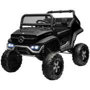 The Mercedes-Benz Unimog 12V Kids Ride on Truck with Remote Control - Officially Licensed is an adventure-ready ride-on car that will ignite your child's imagination and take them on thrilling journeys. This toddler car is an authorized replica of the iconic Mercedes-Benz Unimog, designed to provide an off-road experience like no other.Key Features:- Shock absorption for a smooth ride over bumps and rough terrain- Off-road design for an adventurous and unstoppable driving experience- Remote control for parental operation or a "gas pedal" for the child to operate the car- Bright lights to illuminate the path and ensure safety during dusk and dawn rides- Slow start feature for a gentle and enjoyable driving experience- Assembly requiredSpecifications:- Materials: Made from durable polypropylene and steel for long-lasting use- Overall Dimensions: Measures 42.5" in length, 31.5" in width, and 32.25" in height- Seat Size: Comfortable seat measuring 15.75" in width, 7.75" in depth, and 7.75" in height from the ground- Charging Time: Initial charging time of 4-6 hours, regular charging time of 8-12 hours- Battery: Powered by a 12V, 7AH battery for a powerful and long-lasting ride- Speed: Manual transmission with a maximum speed of 3.1mph, remote control transmission with a speed range of 1.86-3.1mph- Motor: Equipped with a 12V 390# 16000 RPM motor for a thrilling driving experience- Wheels: Features 12.6" diameter wheels for superior traction and stability- Weight Capacity: Can support up to 66 lbs, making it suitable for children aged 37-96 months- Certifications: Meets ASTM F963 and CPSIA safety standardsWith its rugged design and realistic features, this Mercedes-Benz Unimog rc ride on truck is perfect for little adventurers who crave excitement and exploration. Let your child unleash their imagination and embark on thrilling off-road adventures with this officially licensed toy truck.