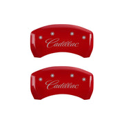 MGP 4 Caliper Covers Engraved Front & Rear Cursive/Cadillac Red finish silver ch