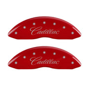 MGP 4 Caliper Covers Engraved Front & Rear Cursive/Cadillac Red finish silver ch