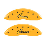 MGP 4 Caliper Covers Engraved Front & Rear Cursive/Camaro Yellow finish black ch