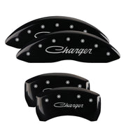 MGP 4 Caliper Covers Engraved Front & Rear Cursive/Challenger Black finish silver ch