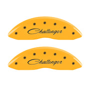 MGP 4 Caliper Covers Engraved Front & Rear Cursive/Challenger Yellow finish black ch