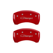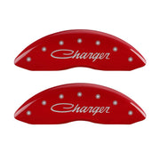 MGP 4 Caliper Covers Engraved Front & Rear Cursive/Charger Red finish silver ch