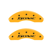 MGP Caliper Covers are a car accessory designed and manufactured specifically for your 2013-2016 Chevrolet Sonic to cover up and hide those ugly brake calipers. These aluminum caliper covers are finished with a high-quality powder coat. MGP caliper covers will enhance your wheel appearance and curbside appeal with either black, yellow or red caliper covers. MGP Brake Caliper Covers are tested for safety fitment and are licensed by major manufacturers.