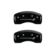 MGP 4 Caliper Covers Engraved Front & Rear With stripes/Dodge Black finish silver ch