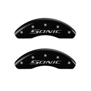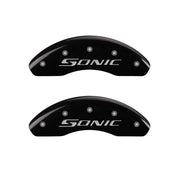MGP Front set 2 Caliper Covers Engraved Front Sonic Black finish silver ch