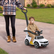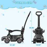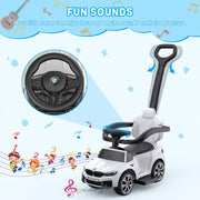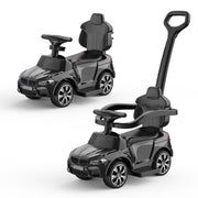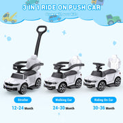 The Music-Infused Ride-On Car with Safety Bar for Toddlers and Kids is the ultimate toy for your little one's adventures. With its advanced 3-in-1 design, this ride-on car can be transformed into a rocking car, stroller car, push car, and walker car, providing endless fun and functionality. Featuring a realistic steering wheel, built-in horn, and music sounds, your child will have a truly immersive and realistic driving experience. The comfortable seat and soft PU leather cushion ensure a cozy ride every time. The removable guardrail backrest and push bars provide all-round protection for your child's safety and growth.This ride-on car is perfect for toddlers aged 1 to 3 years. It comes with removable safety bars and push handles for added stability, as well as adjustable foot pedals, allowing your child to push and maneuver with their own feet. It can be easily transitioned from an infant to a toddler ride-on, ensuring years of enjoyment.Not only is this ride-on car fun, but it also keeps your little one entertained while shopping. With the ability to control the steering, you can supervise your baby at all times while they have a blast. The smooth and quiet wheels ensure effortless rides on almost any surface.Product Specifications:- Color: Available in White and Black- Material: Made of high-quality PP, Iron, and Electronic Components- Car Size: Measures 31.30 inches in length, 13.98 inches in width, and 39.96 inches in height- Suitable Age: Designed for toddlers aged 18-35 months- Stroller: Suitable for 12-24 months- Walking Car: Suitable for 24-30 months- Riding on Car: Suitable for 30-36 months- Maximum Weight Capacity: Supports up to 44 lbsGet ready to embark on exciting adventures with the Music-Infused Ride-On Car with Safety Bar for Toddlers and Kids. It's the perfect gift for birthdays, Christmas, and New Year. Order now and let your child's imagination run wild!