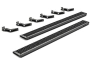 The Growler running board provides a clean yet aggressive look your vehicle. The Sure Grip tread design allows for ultimate traction in any condition. All aluminum construction with modular steel brackets offers long lasting durability and strength for all of your vehicle needs. Bolt-on brackets make installation quick and easy. This is a convenient option for work truck and fleet solutions.