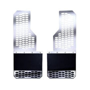 Protect your fenders from debris with our stainless steel Hex mud skins. These units are the perfect blend of style and protection for your truck from rocks, mud, snow, and anything the elements can throw at you and your ride. Choose from a front pair, rear pair, or a full set of mudflaps.These American-made mud flaps are constructed out of heavy-duty quarter-inch rubber that is held to your truck with 18 gauge stainless steel. We offer them in polished stainless steel or brushed stainless steel. These Hex mudguards are also great for any truck that has oversized tires because of their offset design. Installing our hex shield mud skins is easy with no drilling and all mounting hardware included. So if you are looking for a one-of-a-kind style but want extra protection from debris, our Stainless steel Hex Mud Skins are perfect for you. Get these limited lifetime warranty mud flaps ordered today!