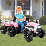 Remote Control Electric Tractor Car with Trailer for Kids - 12V Ride-On Toy