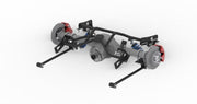 Bolt-On 4-Link for 1967-1970 Cougar. Includes R-Joints, adjustable upper bars, fixed lower bars, bolt-on cradle, axle brackets and hardware. Powder coated black. For use with Shockwaves or Coil-Overs, sold separately.